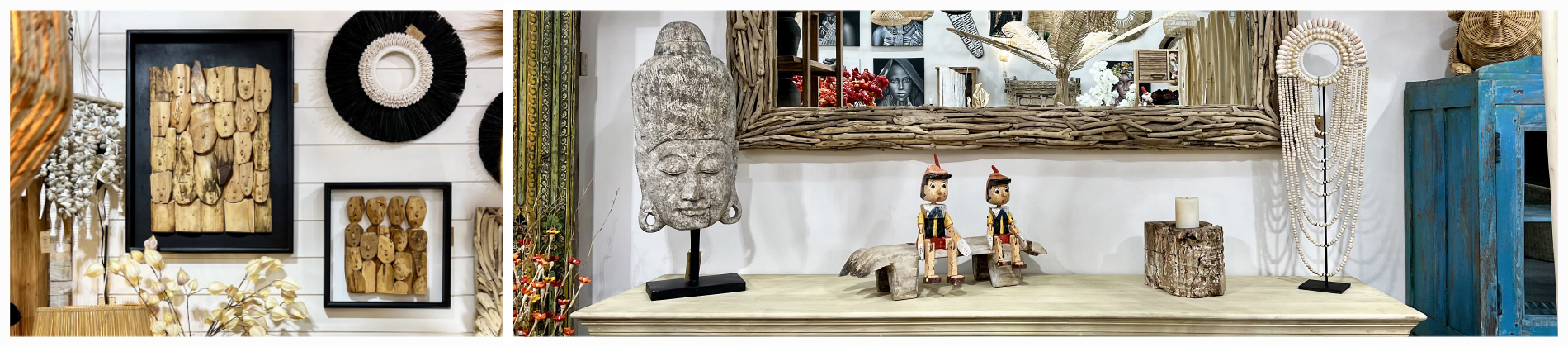 En donnant une seconde vie à des pirogues, barques, roues, racines, nos créateurs mêlent la sobriété Européenne avec la richesse de couleurs et de matières de l’Indonésie.