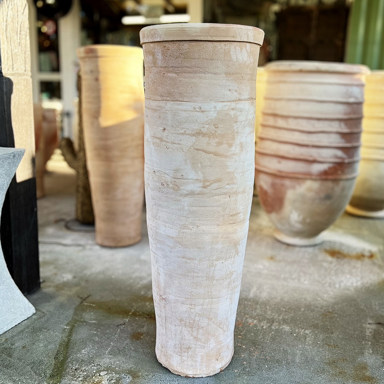 Grande poterie "tube" en terre cuite, d’une hauteur d’environ 100 cm, fabriquée artisanalement dans la région de Zagora, au Maroc.