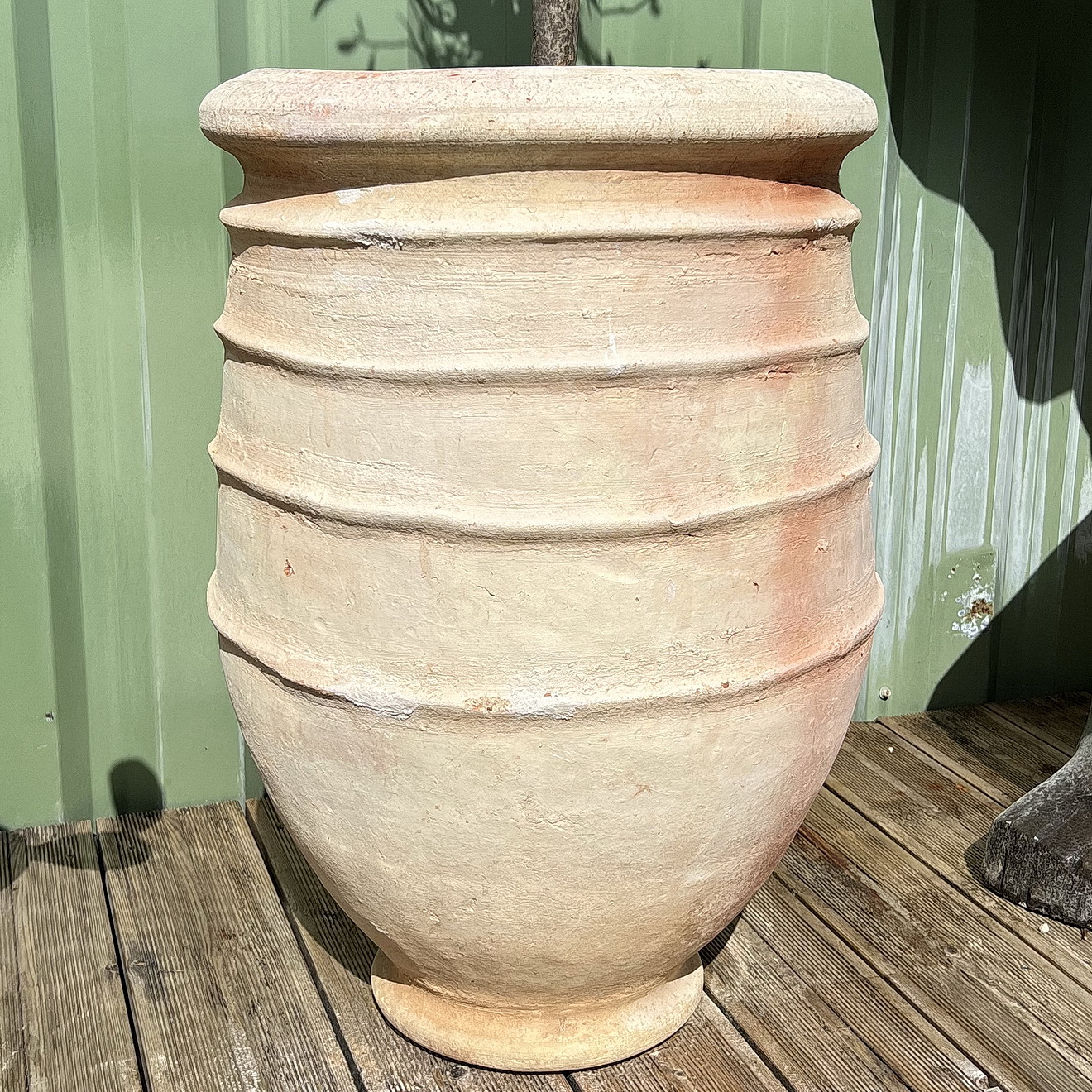 Jarre en terre cuite d’une hauteur d’environ 70 cm, réalisée à la main au Maroc.