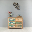 Laissez-vous tenter par cette commode en teck recyclé 6 tiroirs d'une longueur de 100 cm d'invitation au voyage, inspiration bord de mer, fabriquée de façon artisanale, issue de coque de vieilles pirogues restées dans leur jus et apportez de la couleur d'origine, authentique et du peps à votre décoration intérieure.