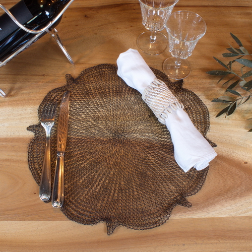 Set de table de table en maille de fer, chacun réalisé manuellement par des maîtres artisans en Indonésie. Habillez votre table avec ces sous-assiette ou dessous de plat en métal finement tressé d'un diamètre de 30 cm inspiré d'art contemporain au caractère stylisé, décalé et épuré de couleur noire ils vous donneront un résultat branché et contrasté, véritable identité de la tendance déco arty.