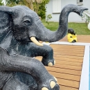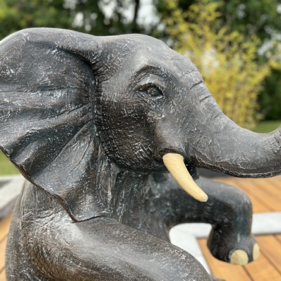 Pour un jardin personnalisé cette grande statue d'éléphant assis d'une hauteur de 100 cm est toute trouvée. Avec sa couleur réaliste patinée gris elle apportera une ambiance safari chic à votre espace extérieur, sous un patio ou une véranda. La particularité et l'avantage de cette sculpture d'éléphant est qu'il est déjà intégralement équipé pour se transformer en fontaine de jardin, il ne vous restera plus qu'à vous procurer une pompe (non fournie) si vous voulez en faire une fontaine. Cet bel objet de décoration attirera forcément tous les regards par son élégance, sa puissance et sa sagesse.