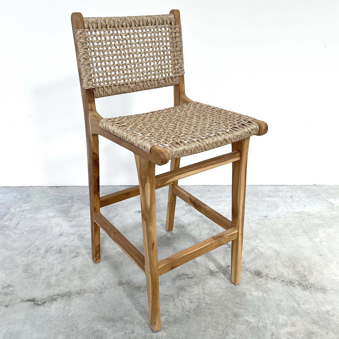 Tabouret haut spécial jardin, en teck et fibres synthétiques
